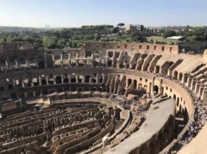 Las zonas superiores del Coliseo ofrecen una de las panorámicas más impresionantes de Roma. Desde allí se pueden observar el Foro Romano, el Monte Palatino y los principales templos de la antigua capital. En la época romana, estas gradas estaban destinadas a las clases más bajas, pero ofrecían una vista privilegiada del conjunto arquitectónico.