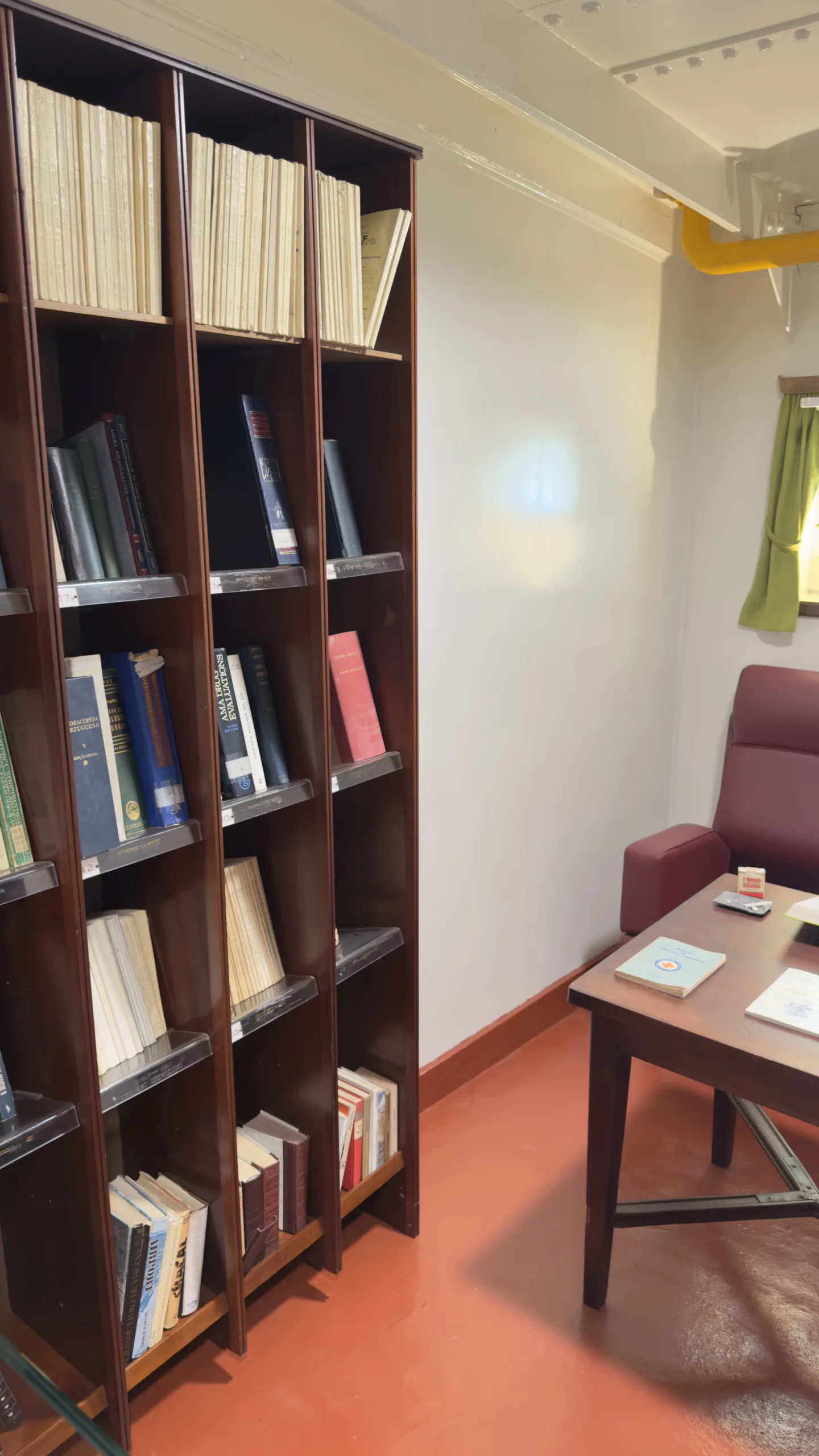 Una de las historias que más nos impresionó fue el imaginar a los cirujanos operando en pleno oleaje, atados con cuerdas para mantener el equilibrio. El barco está distribuido con tres pisos hacia abajo y dos hacia arriba, con flechas que guían el recorrido, guiándote entre un sin fin de escaleras de todo tipo. Nos asomamos por la borda, para apreciar la ciudad, el Monte de Santa Luzia a lo lejos y hasta peces en la ría.