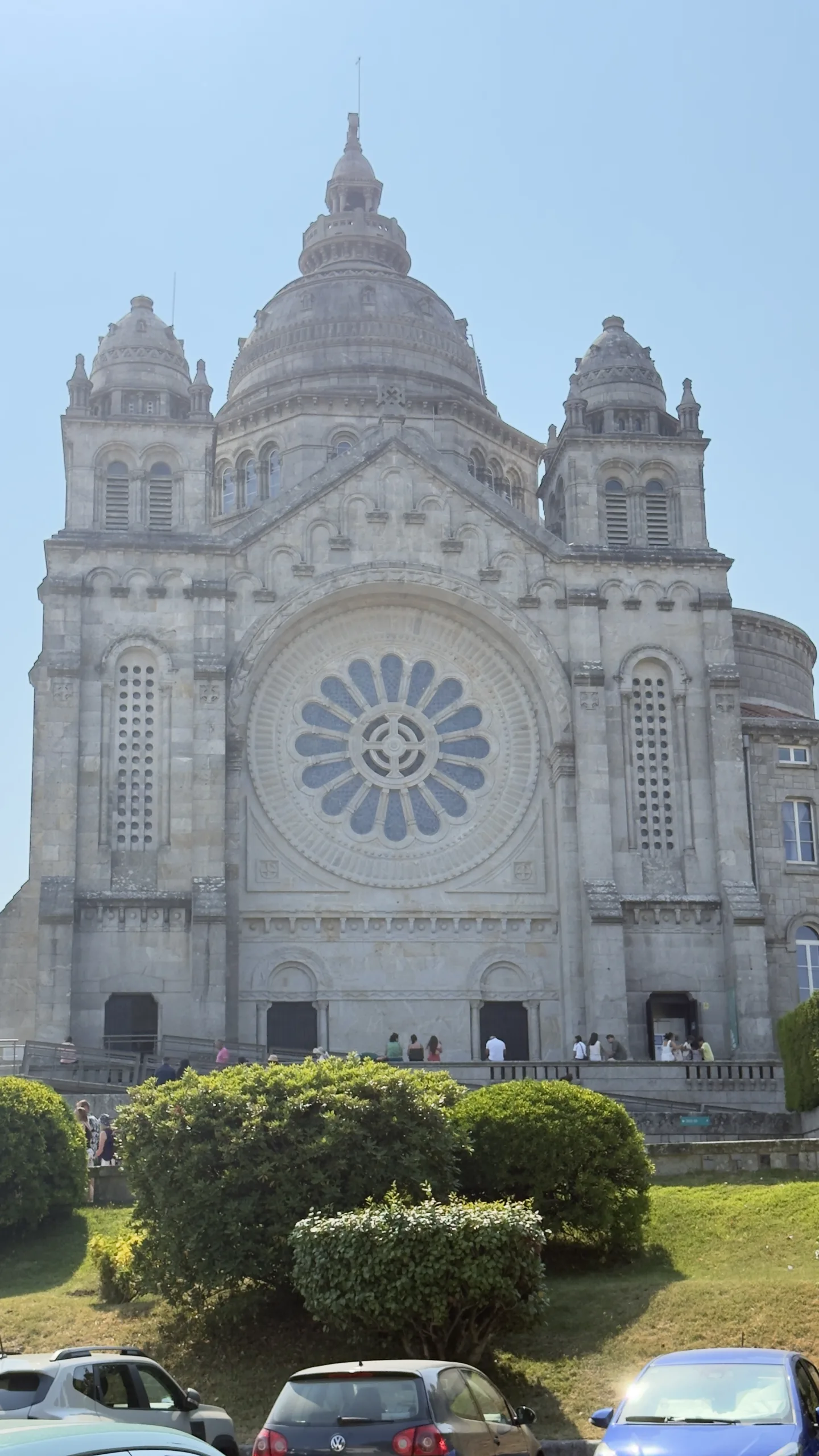 Subimos en coche hasta lo más alto, pagando 1€ por aparcar (despilfarrando euros como millonarios que somos🤑). Aquí no fue tan fácil encontrar sitio, pero al final lo logramos (porque mi padre se inventó un sitio «legal» 😂). Guiados por el sonido de las campanas, llegamos hasta el santuario, famoso por su imponente escalinata barroca que observamos desde arriba y que simboliza la ascensión espiritual.